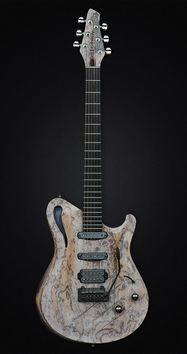 This guitar was the first in line in The Animals Collection. Just a couple of ounces of soil, on which a gracious leopard walked and marked his territory with his scent, were used to capture the spirit of this animal. High-end electronics and the silver wire are running through the body of the Leopard guitar. Like the animal itself, this instrument is unique with its incredible sound rosettes that fill the atmosphere with emotional fractals. The guitar resonates in such a way that it allows the player to take the listeners into dimensions of incredible sounds and definition, as if they are hearing it through the sensitive ears of a Leopard. Its unique Ezo element enhances the harmonics and brings it closer to the feeling of acoustic sound. Leopard is a prototype guitar of Animal collection.