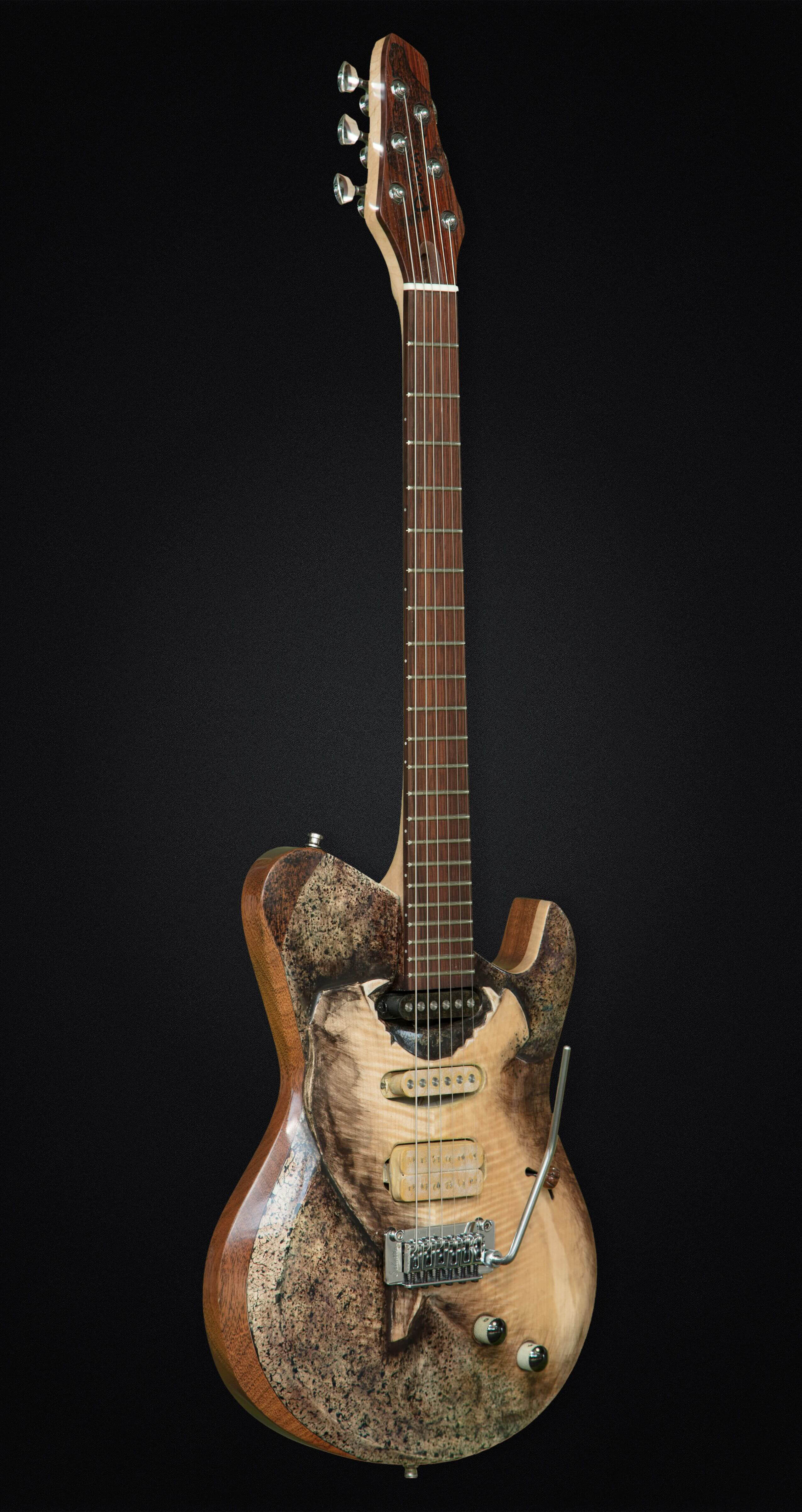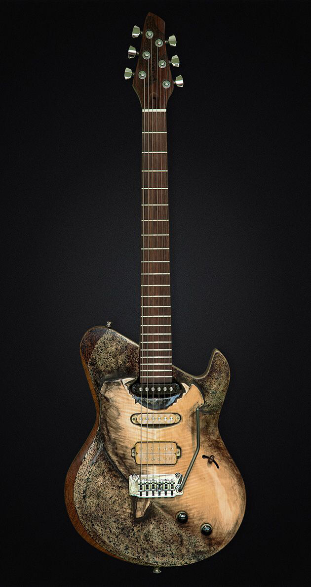 The voice of young mother puma calling for her cubs was “engraved” in wood with Ezofication. This guitar “rocks” in true meaning of the word. An explosive, droning sound, a mean tone, natural sustain within feline nature. This is one guitar that can equally purr and roar. Owning this guitar is like turning into a Puma that targets its pray, and takes the perfect grip for the right moment to attack from above. But when it rests in the shade, leads of transparency, crystal clear sound without distortions, the chords of elegance, agility and calming purr can be heard …Nirvana.